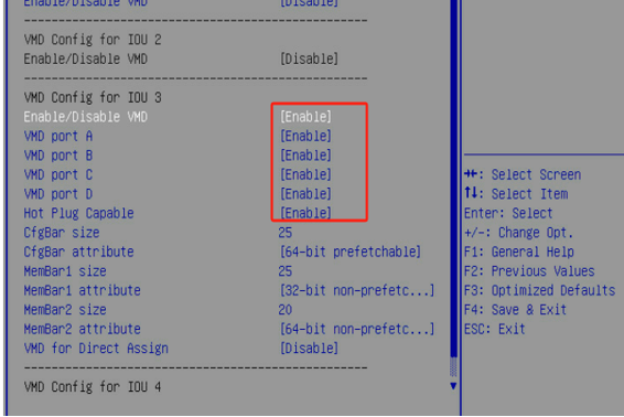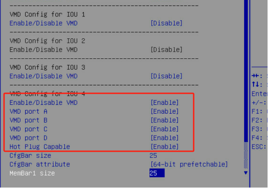 A背板模式下需要开启选项 CPU0 中IOU4后置模组安装4块nvme硬盘 需要开启CPU1中IOU3选项Anybay背板模式下需要开启选项 CPU0 IOU4选项 CPU1 IOU3 选项 CPU1 IOU4 选项